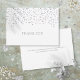 Ele apresenta delicados corações de amor prateados e confetes caindo em direção à sua mensagem de agradecimento, definida em tipografia prateada elegante. Você pode personalizar com sua própria mensagem de agradecimento no verso, ou se preferir adicionar sua própria mensagem manuscrita, exclua o texto. Uma maneira perfeita de dizer obrigado! Criado por Thisisnotme©