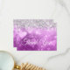 Bordas mais brilhantes e brilhantes, brilhantes e brilhantes, emparelhadas com corações roxas roxas lavandas e gráfico de gradiente de pontos. Toda a textura brilhante, brilhante e brilhante é criada por uma imagem gráfica digital impressa. O estilo e a cor da fonte podem ser personalizados. Personalize para criar suas próprias cartas de agradecimento após a 16ª festa de aniversário da sua filha.