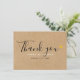 Cartão de agradecimento de casamento com kraft rústico e texto preto e branco elegante, com coração de amor dourado na frente em fundo kraft rústico. No verso, sua mensagem de agradecimento em fundo kraft rústico. Desenvolvido por Thisisnotme