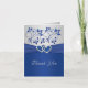 Este cartão de agradecimento floral azul royal e cinza prateado tem uma fita IMPRESSA com um par de jóias de diamante IMPRESSAS e corações unidos de GLITTER FALSO (simulado) que combina com o convite de casamento e outros itens encontrados abaixo. Se houver algum item adicional correspondente que você precise, envie um e-mail para niteowlstudio@gmail.com.