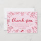 Diga obrigado de uma forma doce com este cartão de agradecimento para Chá de Noiva no Dia dos Namorados com Corações Rosa e Vermelho! Com ilustrações caprichosas de corações, laços, flechas do Cupido, envelopes, flores e desenhos divertidos do Dia dos Namorados, este design encantador traz o clima perfeito de coquette e amor para suas notas pós-festa.