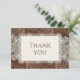 Romântica, Rustic Western Country, Couro e Lace. Mostre o seu estilo romântico de país com este cartões de agradecimentos maravilhosamente desenhado, com um aspecto de couro castanho no estilo ocidental rico e delicados acentos de renda de vintage. O encanto rústico do couro falso combina-se sem esforço com a elegância eterno do lugar para uma aparência que é verdadeiramente única. Fácil de editar com sua nota pessoal de agradecimento.