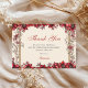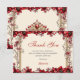 Cartão De Agradecimento Cream and Red Golden Tiara Floral Quinceañera