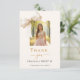 Um cartões de agradecimentos doce 16 moderno e elegante. Um fundo de cor creme macio, decorado com um arco grande. Letras pretas e ouros. Na frente do texto: Obrigado, nome e data. Adicione uma foto. Back: Modelo para sua nota de agradecimento e seu nome.
