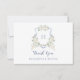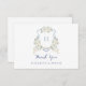 Cartão De Agradecimento Crest Azul De Casamento Azul, Branca Elegante