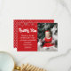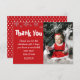 Este lindo cartão de agradecimento é uma ótima maneira de agradecer a amigos e familiares pela companhia e presentes após o período de férias. Este cartão apresenta um texto que diz 'OBRIGADO' com flocos de neve no topo do cartão e sua foto de Natal favorita, uma mensagem pessoal de gratidão ou mantenha o modelo e, em seguida, quem é o remetente. Todos os estilos de fonte de texto, tamanho e cores podem ser alterados clicando no link personalizar ainda mais após a personalização.
