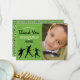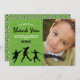 Os cartões de aniversário do futebol agradecem a vocês, com um fundo de campo de futebol verde, uma foto da criança, jogadores de futebol, bolas de futebol e um obrigado moderno que é fácil de personalizar.
