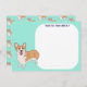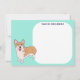As crianças podem enviar sua própria mensagem de agradecimento com esses cartões de agradecimento de cachorro corgi. Use o campo em branco para personalizar facilmente o texto no topo dos cartões. Há espaço para as crianças escreverem sua própria mensagem, fazer um desenho ou ditar sua mensagem de agradecimento para a Mamãe ou o Papai. Esses cartões apresentam uma ilustração fofa de um cão Pembroke Welsh Corgi contra um fundo verde menta. A parte de trás desses cartões de painel plano tem um padrão Corgi correspondente.