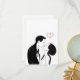 Cute Doodle Amor Coração Romântico Casal Beijo, Cartões de Boas Vindas Dia dos Namorados, Desenho Esboço de Amantes, Ilustração fofa de um casal romântico beijando, pôster simples desenhado à mão em preto e branco, linda ideia de presente para casais.