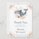 Beautiful baby shower thank you card features a whale with coral pink floral arrangements. Perfect for a baby shower. The words can be changed to suit your own details or requirements