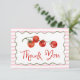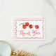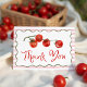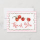 Add a fresh and playful touch to your baby girl baby shower stationery with this charming thank you card featuring hand-painted watercolor cherry tomatoes on the vine. A cheerful "Thank You" message is written in whimsical red script, framed by a scalloped green border and soft pink watercolor stripes for a light, feminine, and summery feel. Perfect for garden baby showers, food-themed baby showers, and summer baby showers for a girl, this design includes space on the back for a personalized typed or handwritten message. A sweet and memorable way to show your gratitude to family and friends after your special day.