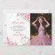 Cartão de agradecimento da coroa floral rosa Quinceanera