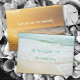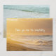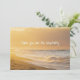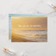 Cartões planos personalizados de agradecimento com cena do oceano. Criados com palavras para agradecimento de hospitalidade, mas este design funciona para qualquer mensagem. Um nascer do sol dourado sobre a praia do oceano é a imagem na frente. A praia é o fundo para uma mensagem e assinatura no verso.