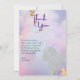 Envie uma mensagem de gratidão tão mágica quanto a festa! Este cartão de agradecimento encantador apresenta o mesmo fundo celestial cor-de-rosa e roxo caprichoso, completo com uma silhueta graciosa de fada e detalhes cintilantes. É a maneira perfeita para o seu pequeno dizer obrigado a todos os amigos e familiares por celebrarem com eles.