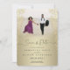 Esta elegante placa Save the Date (Salvar a data) destaca uma foto personalizada do casal enquadrada com uma intrincada borda damask em tons de ouro radiantes. O design é ricamente decorado e ornamentado, aprimorado com um sutil cinzeiro ouro que adiciona luxo e calor. A graciosa caligrafia manuscrita para "Salvar a Data" é acompanhada de uma tipografia refinada, criando um equilíbrio harmonioso entre romance e sofisticação. Na parte traseira da placa, há espaço para um monograma, emoldurado com detalhes em ouro de ornamentado, permitindo que os casais personalizem suas iniciais de forma na moda e eterno. A design combina cores damasco decorativas, sotaques de ouro brilhantes e elegância artística, fazer que seja uma escolha perfeita para casais que desejam anunciar seu casamento com grandiosidade e charme.