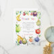 Diga "muito obrigado" da maneira mais doce com este colorido e caprichoso cartão de agradecimento Two-tti Frutti! Projetado para combinar com uma festa de 2 anos de idade com tema de tutti frutti ou frutas, este cartão apresenta adoráveis frutas em aquarela - bananas sorridentes, mirtilos, peras, maçãs e mais - todas usando chapéus festivos. A letra "Obrigado" em cores de arco-íris adiciona um toque alegre e sincero.