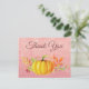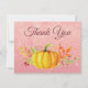 Cartão de agradecimento de outono com abóbora em aquarela e brilho cor de rosa dourado. Fundo rosa dourado. Fonte de letra de amor e gratidão. Adicione sua mensagem no verso ou deixe em branco e escreva à mão. Para personalização adicional, clique no botão "Personalizar" e use nossa ferramenta de design para modificar este modelo.