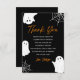 Envie uma nota doce e assustadora de gratidão com este cartão de agradecimento vertical de fantasma fofo preto e laranja. Com um design de fantasma adorável em cores festivas de Halloween, este cartão é perfeito para agradecer os convidados após uma celebração de aniversário infantil. A mistura divertida de assustador e fofo torna-o uma forma divertida de mostrar apreço, mantendo o tema da sua festa. Um charmoso souvenir que amigos e familiares vão amar.
