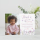 Envie um sincero agradecimento com este encantador cartão de foto com flores silvestres em aquarela, borboletas suaves e o doce sorriso do seu pequeno. Uma maneira linda de mostrar gratidão após uma celebração de aniversário com tema de jardim.