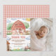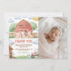 Diga obrigado com um toque pessoal usando este cartão de foto com tema de fazenda. Apresenta um espaço para foto personalizada cercada por paisagem de fazenda em aquarela e animais fofos. Um lindo presente para a família após um dia divertido na celebração dos "Animais da Festa".