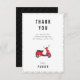 Cartão de agradecimento plano de festa de aniversário com tema de scooter retrô vermelha em aquarela.