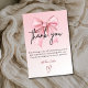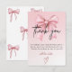 Elegante cartão de agradecimento rosa com um laço de fita elegante, fundo pastel suave, tipografia moderna e um discreto acento de coração. Ideal para celebrações de 12 anos, festas de meninas, bilhetes de agradecimento de aniversário infantil, papelaria de festa estética e cartões de agradecimento sincero para convidados.
