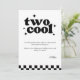 Diga "obrigado por celebrar meu aniversário de dois-cool!" com este cartão de agradecimento retrô elegante. Projetado com uma tipografia ousada e divertida e um padrão xadrez preto e branco da moda, este cartão é perfeito para uma festa de aniversário de 2 anos com tema Two Cool.