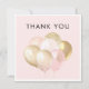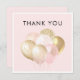 Cartão de agradecimento de aniversário de casamento minimalista, simples e elegante, perfeito para os seus convidados receberem após terem participado do seu aniversário de casamento. O cartão apresenta balões cor-de-rosa e dourados e pode ser personalizado com a inclusão do seu próprio texto no verso do cartão.