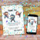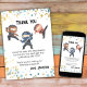 Este cartão de agradecimento de aniversário de ninja faz parte de um conjunto de acessórios de festa de aniversário combinando. O aniversariante vai desfrutar de cada momento deste dia especial. Este design apresenta várias tonalidades de azul, laranja e marrom, juntamente com fontes fáceis de ler e muito espaço para adicionar toda a sua mensagem única.