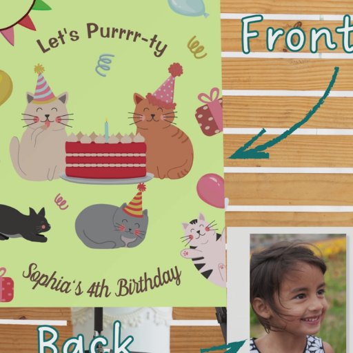 Envie os mais doces agradecimentos com este Cartão de Agradecimento de Aniversário dos Gatos de Desenho Animado, projetado para complementar perfeitamente uma celebração divertida com tema de gatinho. A frente apresenta adoráveis gatos de desenho animado em chapéus de festa - um lambendo creme da pata e outro ao lado de um bolo de aniversário - cercado por elementos festivos alegres como balões, serpentinas, presentes e uma faixa colorida em um fundo verde suave. No topo, lê-se "Obrigado", e abaixo da ilustração, uma mensagem editável divertida diz: "Eu adorei o bolo e os presentes também, mas a minha parte favorita foi ver você!". O verso do cartão está em branco, dando a você espaço de sobra para adicionar uma mensagem sincera ou divertida, tornando-o perfeito para aniversários de crianças e famílias que amam gatos.