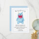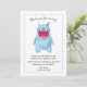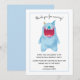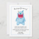 Design de monstro fofo para a festa de aniversário do tema monstro bash do seu filho! Ilustração de um monstro azul com a boca bem aberta usando um chapéu de festa. O texto acima diz "obrigado por vir!" e o texto abaixo entra em mais detalhes agradecendo ao amigo por participar do evento e pelo presente que trouxe. Você pode adicionar o nome do seu filho na parte inferior. Os textos são facilmente editáveis online.