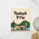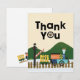 Depois que seus convidados partirem da festa de aniversário temática de trem dos seus filhos, envie a cada um um cartão de agradecimento manuscrito (estilo plano). Um lado tem um design colorido de trem e paisagem com "Obrigado". O outro lado tem muito espaço em branco para sua mensagem, além de um trem de vários vagões sobre trilhos, completo com uma chaminé sorridente e cabine.Coordenadas com a coleção Choo-Choo Train da Hopscotch Prints.