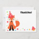 Cartão simples (4,5 x 6,25") com ilustração de desenho animado de uma pequena raposa com um cupcake usando um chapéu de festa. Ao seu redor há estrelas. Texto "Obrigado" (pode ser removido). Cartão de agradecimento de aniversário brilhante e divertido. Desenho e ilustração por MheaDesign. Para qualquer dúvida sobre a imagem ou design, por favor entre em contato comigo através da minha página no facebook: https://www.facebook.com/MheaDesign