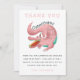 Cartão de agradecimento de festa de aniversário infantil com tema de jacaré fofo, apresentando ilustração de um jacaré rosa com um chapéu de festa na cabeça. O texto diz "chomp chomp". O texto padrão agradece aos convidados pela celebração e pelo presente. Personalize este produto adicionando seu nome na parte inferior. Ótimo para a festa de aniversário de uma menina no verão.