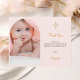 Um cartão de agradecimento de batismo moderno e elegante. Um fundo chic em rosa discreto e dourado. Personalize e adicione a foto da criança, nota de agradecimento e nome. Moldura de foto em arco