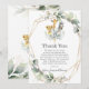 Personalize este cartão chic de agradecimento de batismo/cristismo de animais da selva com vegetação de forma neutra em relação ao gênero, com sua própria mensagem de forma fácil e rápida. Basta clicar no botão personalizar para editar os textos, alterar as fontes e as cores das fontes. Itens correspondentes disponíveis na loja. (c) The Happy Cat Studio