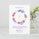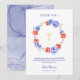 Cartão de Agradecimento de Batismo de Bebê Floral Azul e Vermelho. Caracteriza uma coroa de peônias aquareladas e foto de bebê. Itens correspondentes disponíveis.