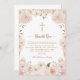 Cartão de agradecimento de batismo floral boho rosa elegante. Uma moldura floral boho rosa moderna em aquarela com uma cruz. Celebre essa ocasião alegre com nosso cartão de agradecimento personalizado que dará o tom para um encontro memorável e significativo.
