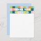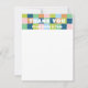 Este cartão de nota de papelaria pessoal plana apresenta fontes divertidas e sem serifa e texto facilmente editável em um gráfico de tabuleiro de xadrez organicamente moldado em uma combinação de cores rosa, laranja, verde e azul para refletir uma estética descontraída, mas atual, para o casal ou pessoa que não leva a vida muito a sério.
