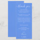Um cartão de agradecimento de recepção de casamento azul centáurea elegante. Personalizado com sua mensagem especial de agradecimento em tipografia estilosa. Um agradecimento especial aos seus convidados. Concebido por Thisisnotme©