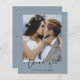 Cartões de Agradecimento de Casamento Azul Empoeirado Econômicos que têm uma foto na frente e atrás. Os cartões de agradecimento contêm uma tipografia de roteiro cursivo manuscrito moderno que é elegante, simples e moderno para usar após a celebração do seu casamento.