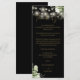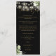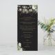 Um cartão de agradecimento de recepção de casamento com luzes de corda de folhagem floral preta e dourada elegante. Personalizado com sua mensagem especial de agradecimento em tipografia elegante. Um agradecimento único para seus convidados. Concebido por Thisisnotme©