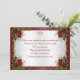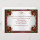 Cartão de agradecimento de casamento "Casamento de inverno" Convite de casamento de inverno de cetim vermelho com tema de festa com ornamentos elegantes em dourado e burgundy, fitas de cetim brancas e acentos dourados