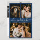 Orçamento, Moderno, Elegante, Colagem de 3 Fotos à Mão Cartão de Agradecimento de Casamento Azul-Marinho. Modelo de cartão de agradecimento de casamento minimalista com três (3) fotos na frente e (1) uma foto no verso. Com o texto "Amor e agradecimento" em uma fonte caligráfica cursiva manuscrita com rabiscos em cor branca sobre fundo azul-marinho. Pequeno coração entre os nomes. Personalize seu nome e mensagem de agradecimento personalizados. Se preferir escrever à mão sua nota, basta excluir o texto de exemplo para criar mais espaço. Se precisar de ajuda ou item correspondente, entre em contato com o designer!
