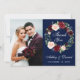 Cartão de Foto de Casamento com Coroa Floral Aquarela Burgundy Marsala Azul de Agradecimento