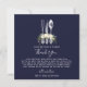 Um cartão de agradecimento com um desenho de talheres vintage com flores/grelhas em marfim e fundo azul-marinho. Fácil de editar ou excluir os campos de texto para atender às suas necessidades. Perfeito para casamentos! Menu e cartões de lugar correspondentes estão disponíveis, visite minha loja para comprar..
