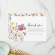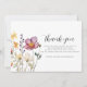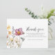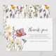 Lindos cartões de agradecimento de casamento com flores silvestres em aquarela com o seu texto na frente e um padrão de flores silvestres no verso.