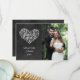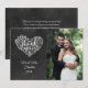 Um cartão de agradecimento elegante com os detalhes de agradecimento numa lousa ao lado da sua foto de casamento favorita. O verso tem uma lousa de fundo correspondente que você pode personalizar com a sua mensagem especial de agradecimento ou deixar em branco. Desenhado por Thisisnotme