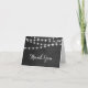 Design de cartão de agradecimento de casamento de verão moderno e elegante com luzes de corda simples e elegantes penduradas na parte superior e uma mistura de fontes de letra modernas e caligráficas em um fundo de textura de aquarela falsa impressa. Um design simples e elegante, perfeito para o verão! Clique no botão PERSONALIZAR para personalizar as fontes, mover o texto e criar um design de convite único.