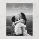 Cartão de agradecimento de casamento elegante, sofisticado e moderno com roteiro de foto. Parte de uma coleção de casamento. As cores podem ser alteradas. A parte traseira inclui uma mensagem genérica de agradecimento que você pode personalizar para cada convidado ou remover completamente se preferir escrever à mão seu agradecimento.